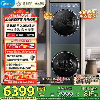 美的清风明月2.0洗烘塔套装,含10公斤滚筒洗衣机+变频热泵烘干机,高效节能,适配家庭日常使用。现价5333.68元,国家补贴叠加优惠,京东平台热销中,洗衣烘干一体设计省时省力,提升生活品质首选。