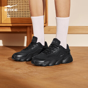 鸿星尔克(ERKE)男子休闲鞋夏季舒适厚底老爹鞋软弹运动鞋简约男甜心2 正黑 41