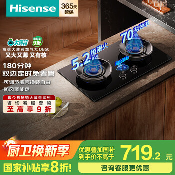 海信Hisense S2系列DB31Max猛火灶,5.2KW大火力70%高热效率,台嵌两用设计,379.03元京东百亿补贴价,内外铜火盖可调节,国家再...