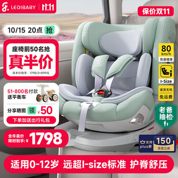 ledibaby太空舱2 PRO安全座椅,0-12岁松霜绿官配版,仅需899元!多角度可调设计,长途旅行宝宝也能舒适安睡,全方位保护您的宝贝...