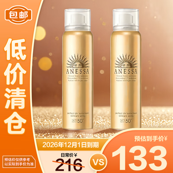 ANESSA安热沙防晒喷雾,金灿倍护型号,60g*2瓶装仅133元,京东特惠清仓!高效防水防汗,轻松应对户外运动与日常通勤。细腻喷雾,均匀覆盖,肌肤清爽不油腻,为夏日防晒保驾护航。临期好物,性价比之选!