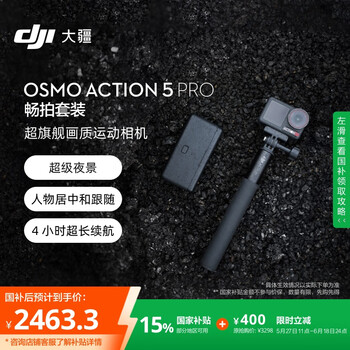 大疆 DJI Osmo Action 5 Pro 运动相机畅拍套装,超旗舰画质助你记录摩托骑行、潜水徒步等户外场景,稳定流畅不惧挑战。2463.3元即可拥有专业级Vlog神器,适合追求极致影像的你,让每一刻都精彩呈现!