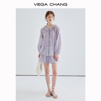 VEGA CHANG 时尚套装 女 2024年休闲轻薄透气上衣短裤减龄两件套 桔梗紫 短裤 S