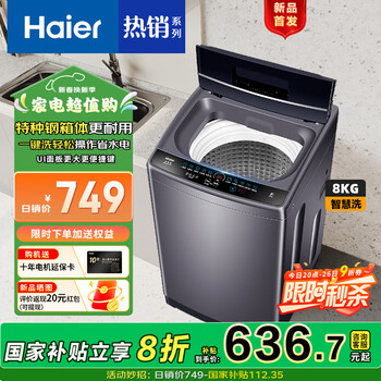 海尔Haier大神童系列波轮洗衣机EB80M30Mate1,8kg容量仅496.21元(需用券),博卡灰简约大气。全自动设计,节能健康,支持桶自洁、智能称重,漂甩二合一,适合家用、租房或宿舍使用,超净洗让衣物更洁净,性价比之选。