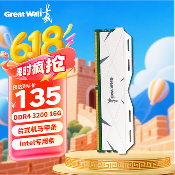 长城16GB DDR4内存条,3200MHz马甲条专为Intel平台优化,大幅提升台式机运行速度,散热性能卓越,稳定可靠。仅需100元,畅享高效游戏与办公体验,是装机升级的理想选择!