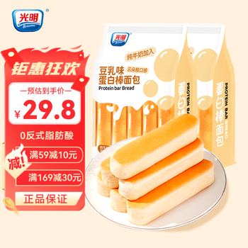 光明Brilliant蛋白棒夹心面包,豆乳味270g*2袋仅8.4元,买2件更划算!这款营养代餐面包,富含优质蛋白,适合作为早餐、下午茶或儿童零食。口感丰富,夹心设计满足味蕾享受,健康又美味,轻松搞定每一天的能量补充!