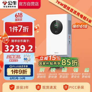 公牛新能源汽车充电桩,立方云7KW壁挂直流款,适配蔚来、红旗等直流口车型,快充更高效!现京东活动到手仅需2748元,含送装服务与漏保开关,性价比超高,为您的绿色出行保驾护航,值得信赖。