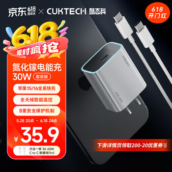酷态科氮化镓PD充电器30W,搭配C-C数据线,小巧便携,高效快充,兼容苹果15/16、小米及iPad等设备。仅27.46元,性价比之选,满足日常与旅行充电需求,京东热卖中!