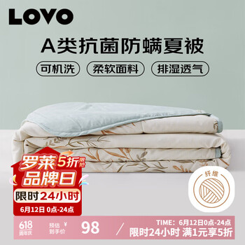 LOVO乐蜗抗菌夏被,舒柔轻盈2.4斤,200*230cm大尺寸,仅83.3元!选用优质纤维材质,有效抗菌防螨,守护健康睡眠。无论是空调房还是夏季夜晚,都能带来清凉舒适的体验,品质之选,尽在LOVO!
