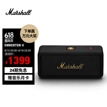 马歇尔 EMBERTON II 户外 蓝牙音箱 黑金色