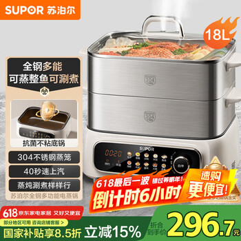 苏泊尔电蒸锅ZN30FC669,18L大容量设计,多功能一体满足炖煮、涮火锅等需求,家用更省心。高效节能,操作便捷,仅需239.55元(领券购买),是厨房必备的理想选择,让美味轻松呈现!