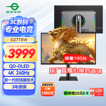 国家补贴:泰坦军团 G27T8W 26.5英寸QD-OLED显示器 (4K、240Hz、0.03ms)