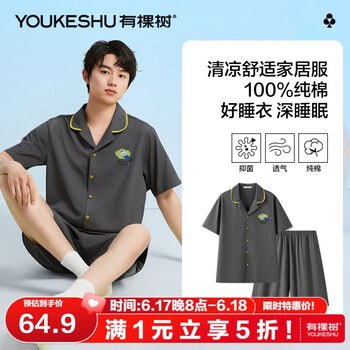 有棵树男士家居服,5A抑菌技术,100%精梳棉材质,柔软舒适更健康。夏季开衫设计,透气亲肤,适合居家或日常休闲穿着。父亲节送礼佳选,仅需64.95元,让爸爸尽享高品质生活!