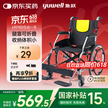 国补7折:鱼跃 H053C 铝合金折叠轻便轮椅