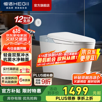 恒洁轻智能马桶一体机HQ606,不限水压、虹吸式设计,座圈加热、离座自动冲水,静音舒适。400mm坑距适配390mm以上空间,性价比之选。券后仅1061.65元,为家庭升级高品质如厕体验!