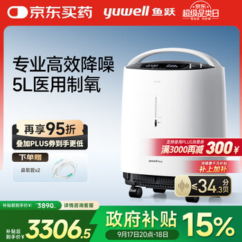鱼跃8F-5W医用分子筛制氧机,5L大流量设计,2108.93元享医用级品质。超轻音运行,适合老人居家吸氧,触屏操作便捷,支持雾化功能...