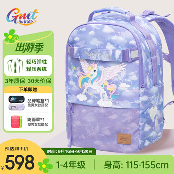 Gmt for kids儿童护脊书包粉色独角兽款,22L大容量设计,专为1-3-4年级小学生打造。PLUS会员专享578元包邮,下单赠笔盒零钱袋,...