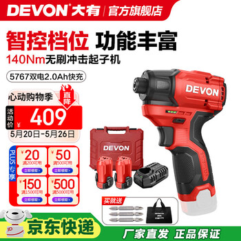 大有(Devon)12V无刷冲击起子机锂电电动起子机5767电钻电动螺丝刀140Nm大扭力 5767 双电2.0Ah+塑箱