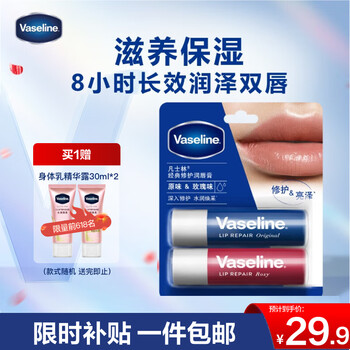 凡士林修护润唇膏套装3.5gx2原味+玫瑰花蕾深层补水保湿滋养润唇