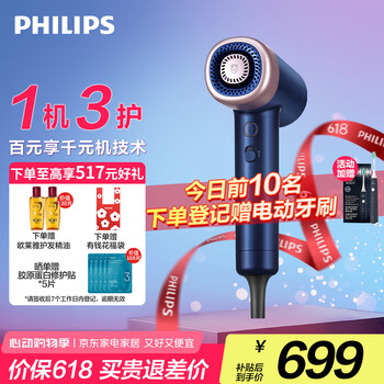 飞利浦(PHILIPS)7系AIR高速吹护机电吹风机 家用静音负离子大功率不伤发小巧便携送家人礼物 国家补贴