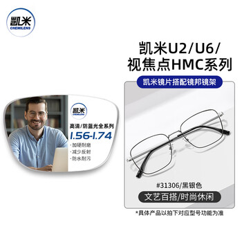 凯米 U6系列 1.74防蓝光镜片(高度数更显薄)+超轻钛架多款可选