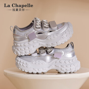 拉夏贝尔女鞋老爹鞋女薄款透气显脚小水钻镂空百搭厚底运动凉鞋子女 变色紫 37