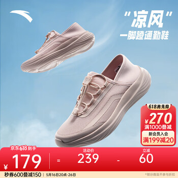 安踏凉风一脚蹬丨轻便缓震舒适运动鞋女2025年夏季新款通勤训练鞋 藕灰-3 37.5