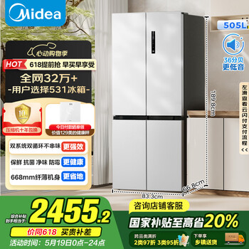 国家补贴:美的 MR-531WSPZE 风冷十字对开门冰箱 505L 苍穹灰