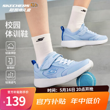 Skechers斯凯奇儿童简约百搭小白鞋轻便休闲鞋舒适运动鞋405094L/303580L 【透气款】男童-浅蓝色/LTBL 38