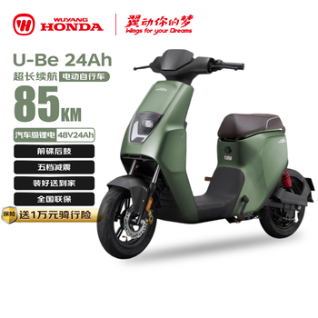 移动端、京东百亿补贴:五羊・本田 HONDA 五羊-本田电动自行车U-Be长续航85KM电动车锂电池48V24Ah电瓶车新国标上班代步小电驴牛油果绿
