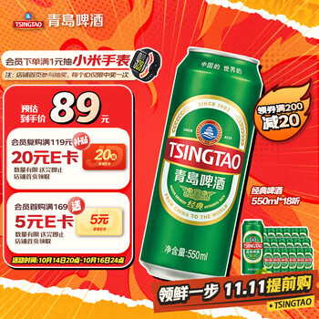 PLUS会员:TSINGTAO 青岛啤酒 经典拉格 550ml*18听 加量不加价 整箱装 双十一热卖