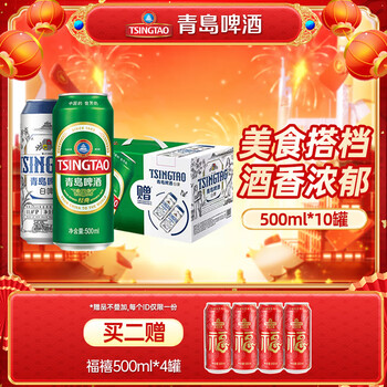青岛啤酒经典白啤礼盒装,10°P经典+2白啤,500mL10罐,40.05元(需买2件,用券)。