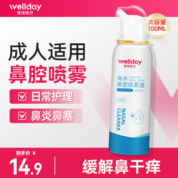 维德(WELLDAY)生理盐水洗鼻器海盐水喷鼻腔喷雾器鼻窦鼻炎喷剂鼻塞清洗器 升级款100ml】等渗成人款*1瓶